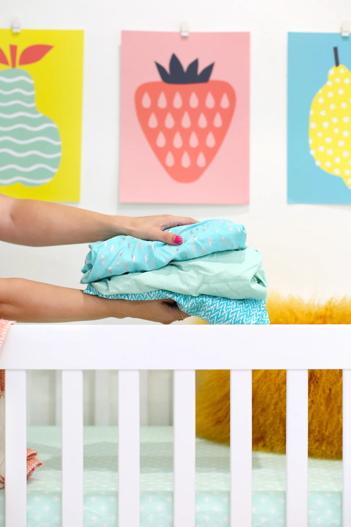 Hooray! Crib sheets, any size you need ’em! I ransacked my local fabric store for all of the minty and aqua patterns I could find, and I can’t wait to show you how they fit in Baby Girl’s nursery. Soon, I promise! In the meantime, stay tuned for more fun sewing projects with EverSewn. xoxo
