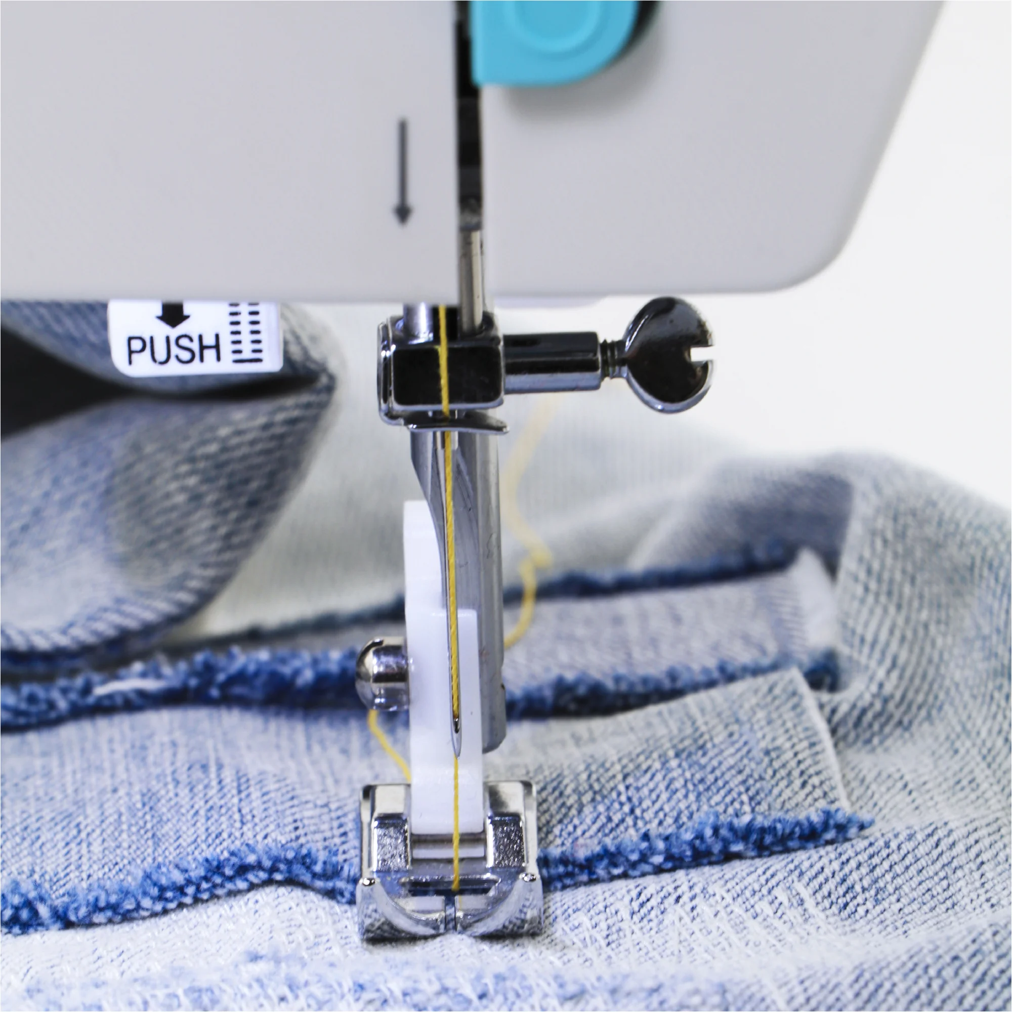 Beginners need to learn on a machine that will last through the trials and errors of learning to sew. The EverSewn Maker 100 was made to do just that. It has a strong metal frame, easy-to-use features, and can even stitch through the toughest of fabrics like leather or denim.