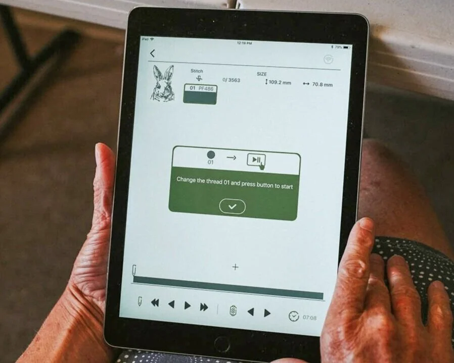 The embroidery machine is compatible with smart devices. The App and your smart device (Android or Apple) will allow you to customize your digitized designs.